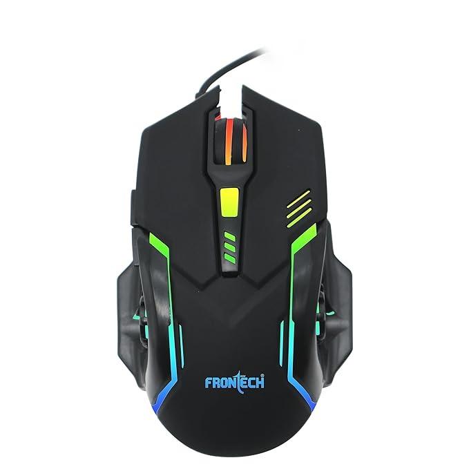• FRONTECH Wired Gaming Mouse, 6 Key RGB Backlit Effect| 7 LED Lighting| USB Plug & Play| 3600 DPI| for PC/Desktop/Mac/Laptop, 1-Year Warranty (MS-0050, Black)